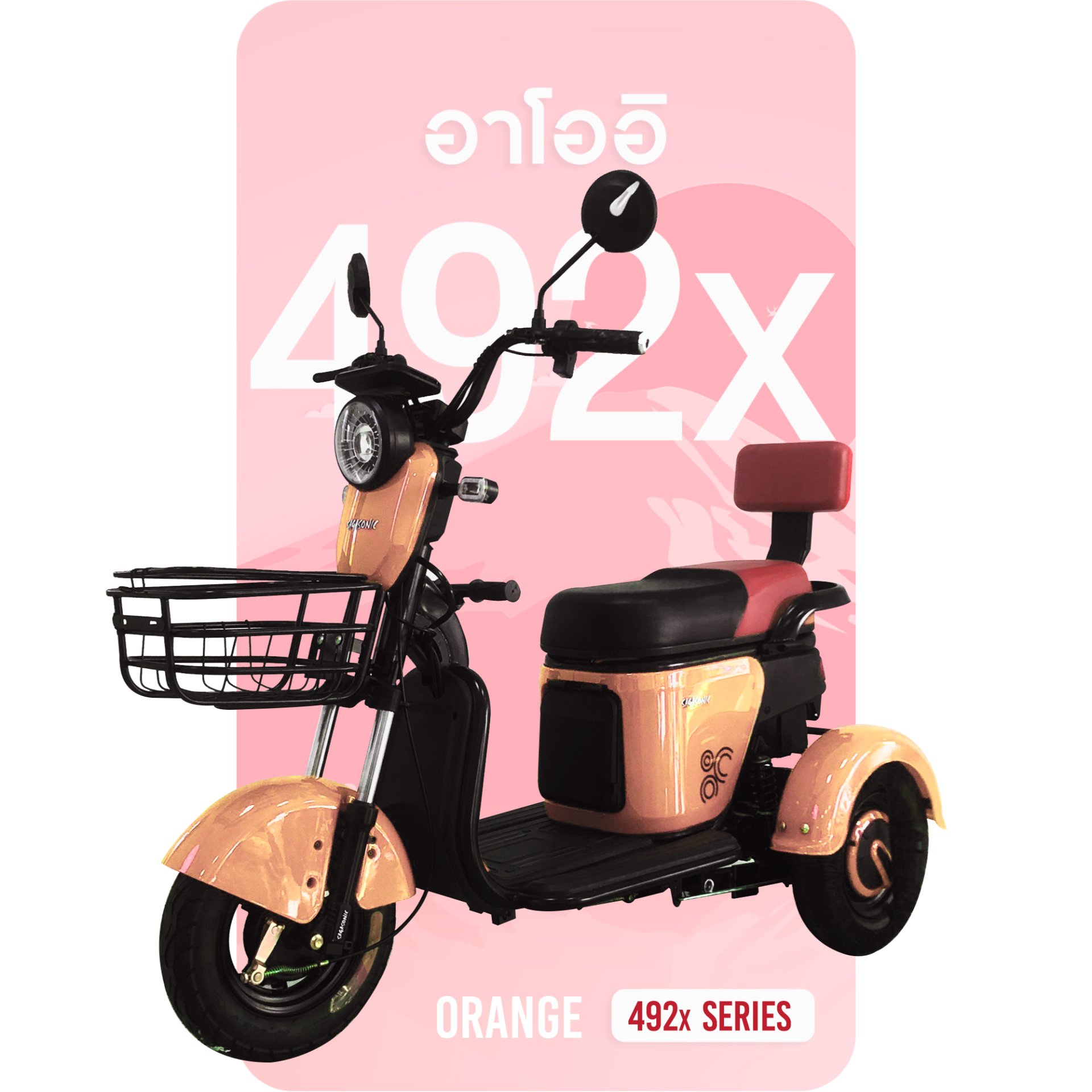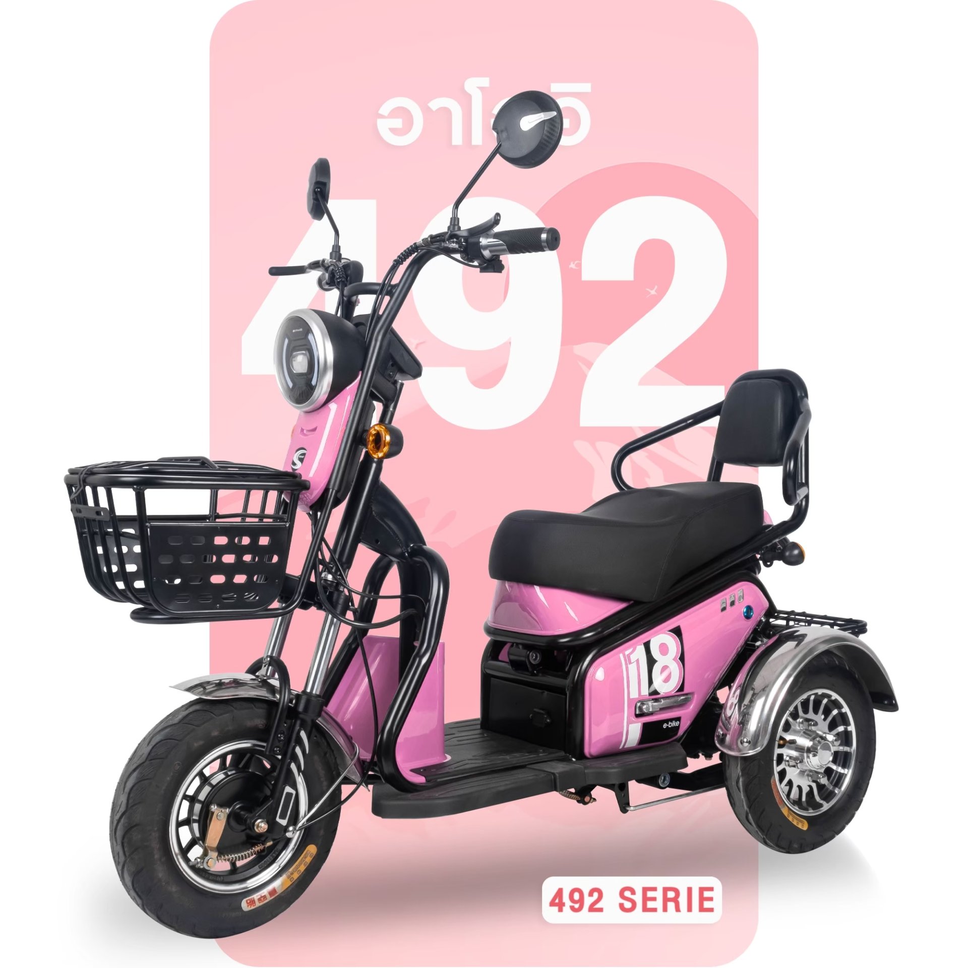 รุ่นที่4 จักรยานไฟฟ้าอาโออิรุ่น 492-X จักรยานไฟฟ้าสามล้อดีไซน์น่ารัก เครื่องแรง ขับขี่ง่ายสบายกว่าเก่า มีขนาดเล็กกะทัดรัด สะดวกในการเดินทาง เบาะนั่งตามสรีระแถมยังมีเบาะนั่งเสริมสำหรับเด็ก